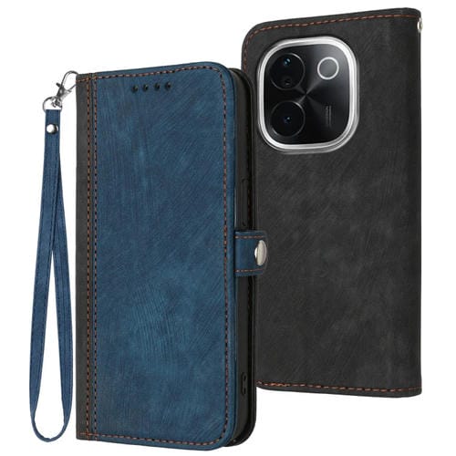 Funda de Cuero para Teléfono con Correa de Mano y Hebilla Lateral Doble Plegable para Vivo Iqoo Z9S Pro/T3 Pro 5G (Azul Real)