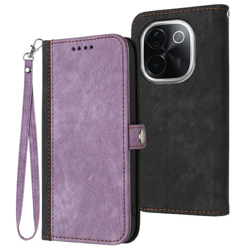 Funda de Cuero para Teléfono con Correa de Mano y Hebilla Lateral Doble Plegable para Vivo Iqoo Z9S Pro/T3 Pro 5G (Morado)