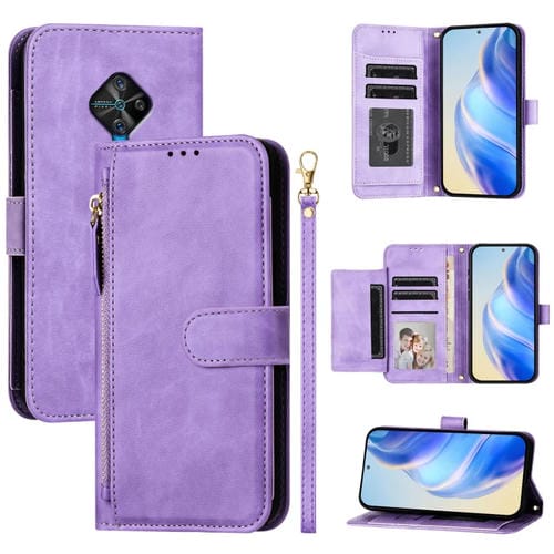 Funda de Cuero para Teléfono con Cremallera y Ranuras para Múltiples Tarjetas para Vivo Y31 4G 2021 India/Y53S 4G (Morado)