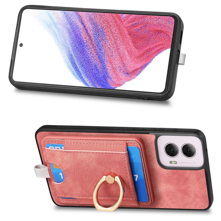 Funda de Cuero con Tarjetero Magnético Divisible para Motorola Moto G Power 2024 5G (Rosa)