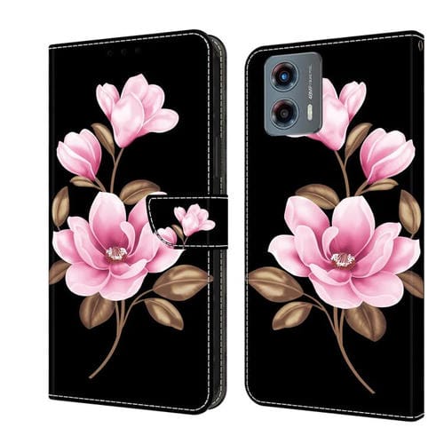 Funda de Cuero Pintada a Mano para Motorola Moto G 2023 (Flores Negras)