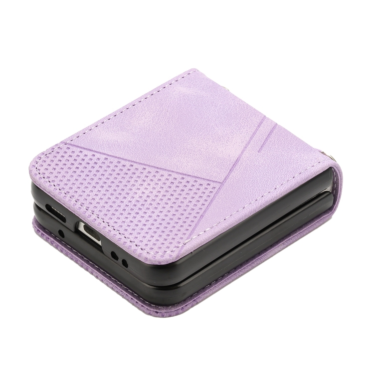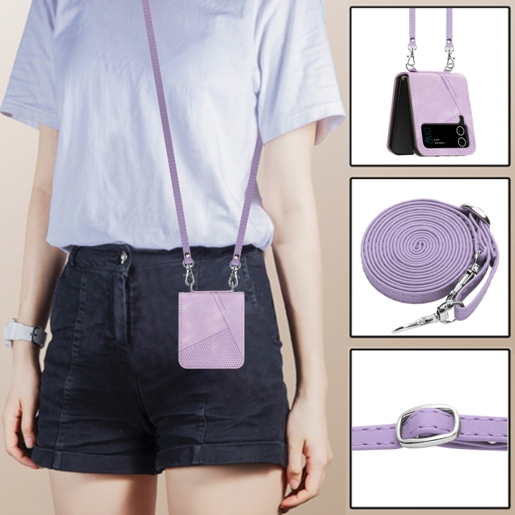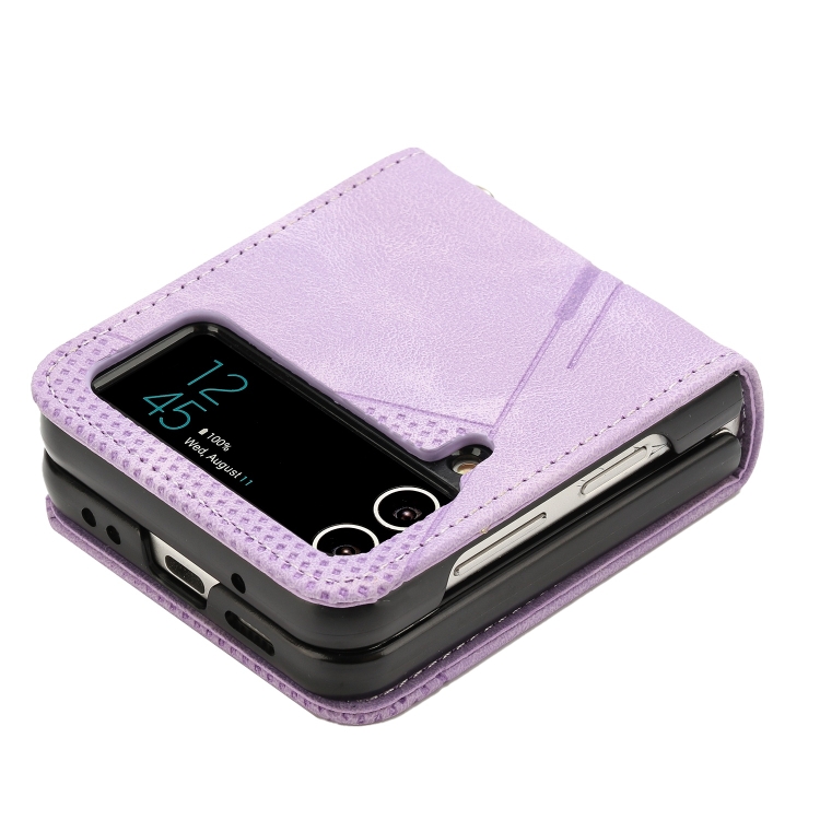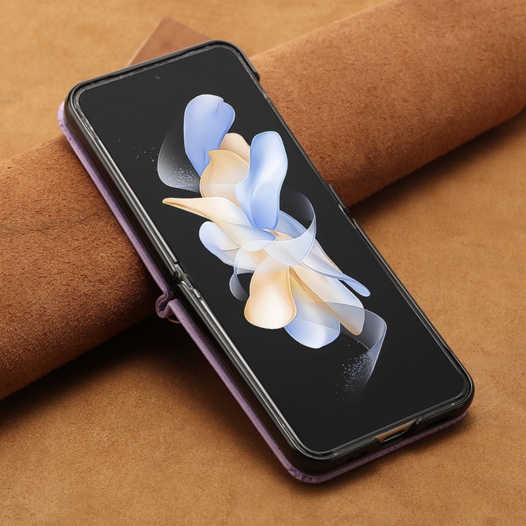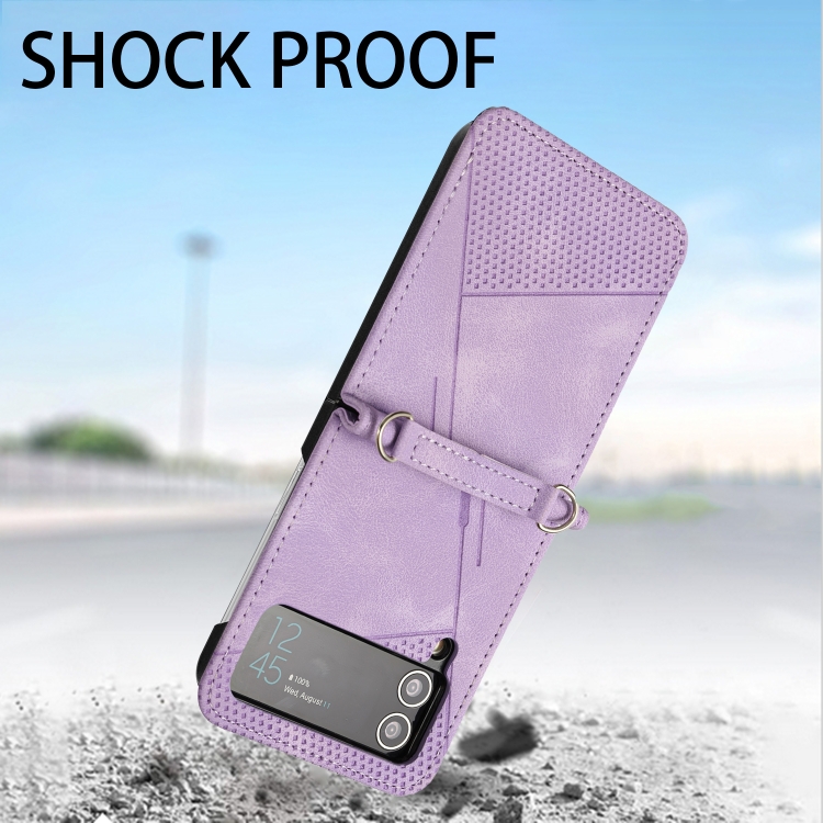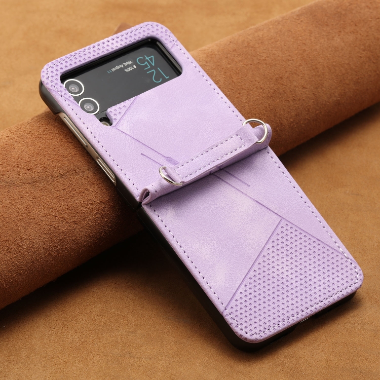 Funda Cuero Plegable Samsung Galaxy Z Flip4 Forma Triangular con Cordón (Morado)