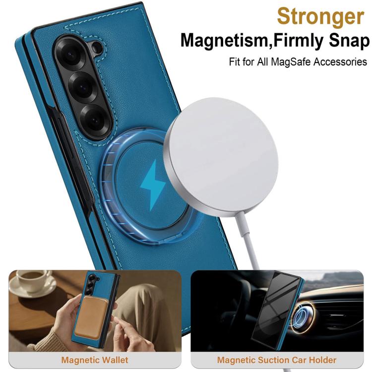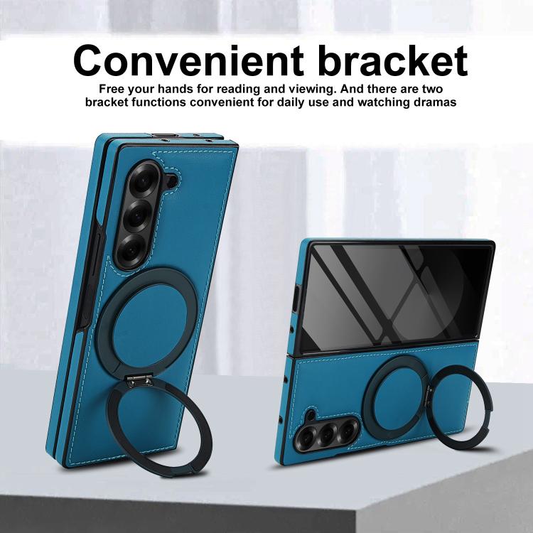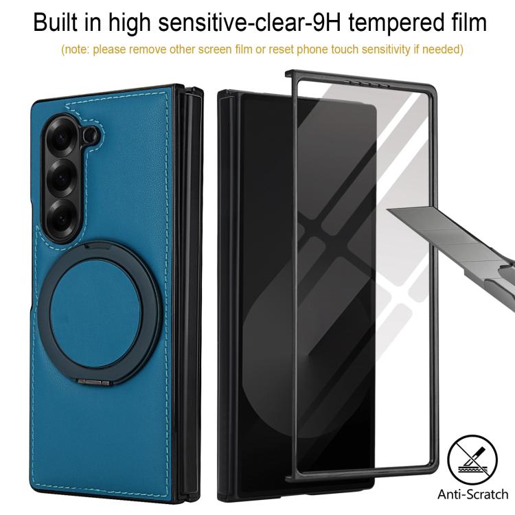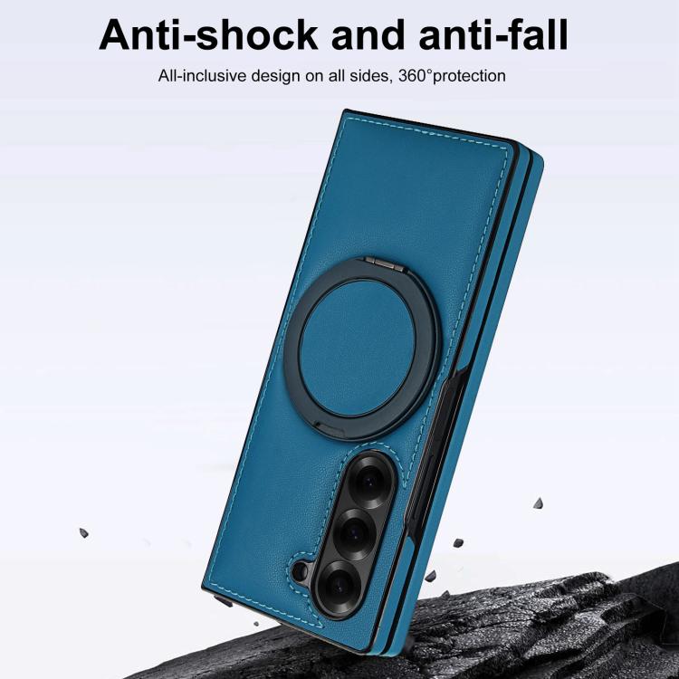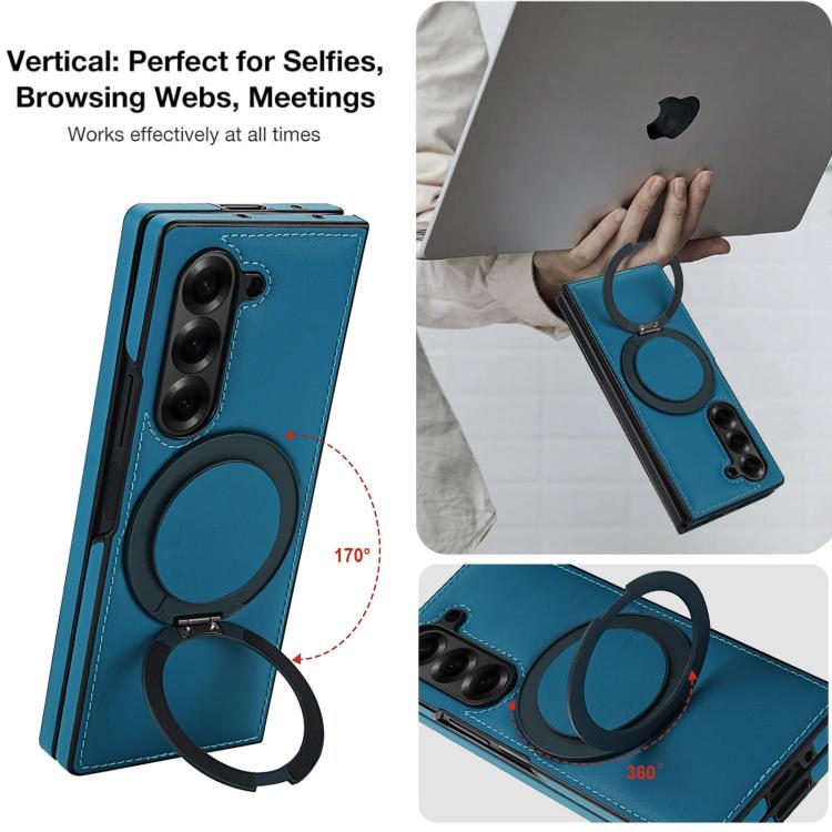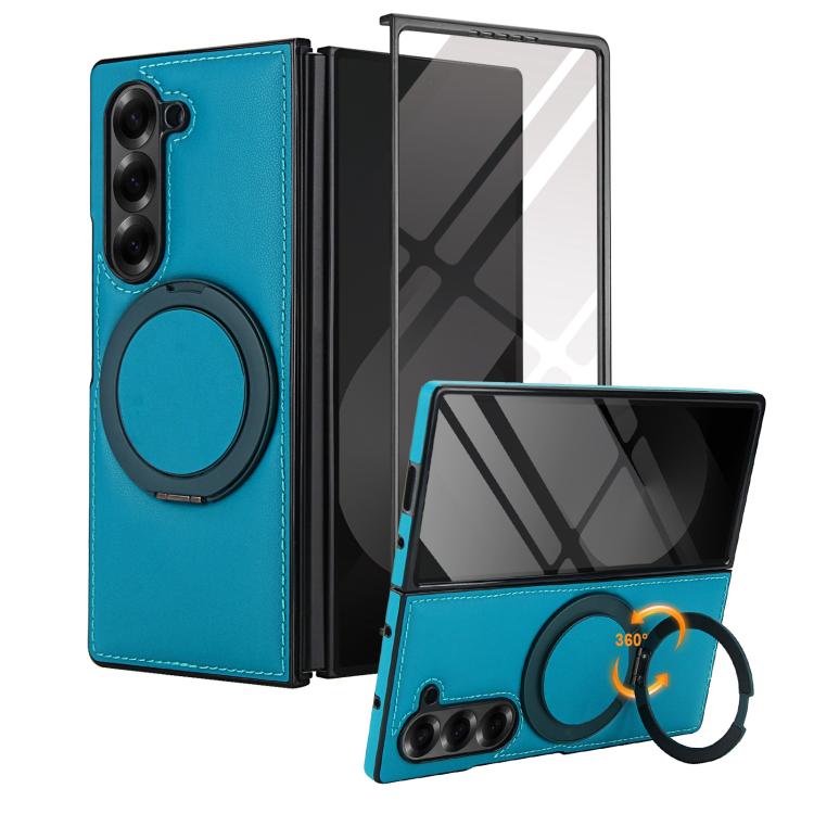 Funda de cuero plegable con soporte giratorio y película MagSafe integrada para Samsung Galaxy Z Fold5 (azul)