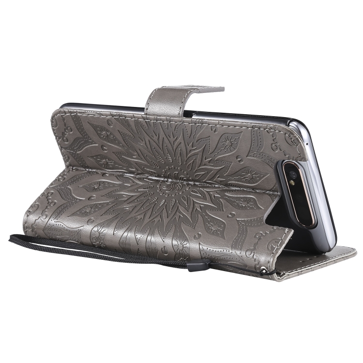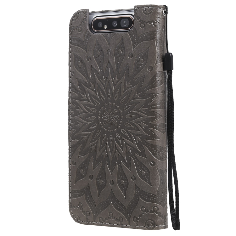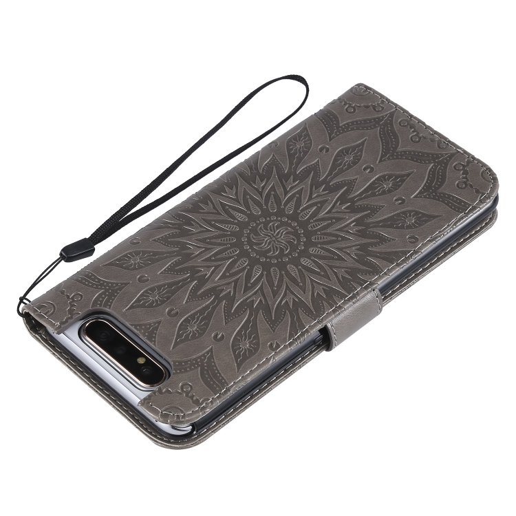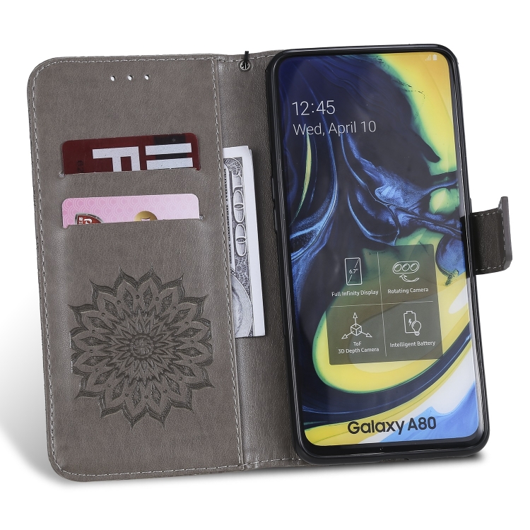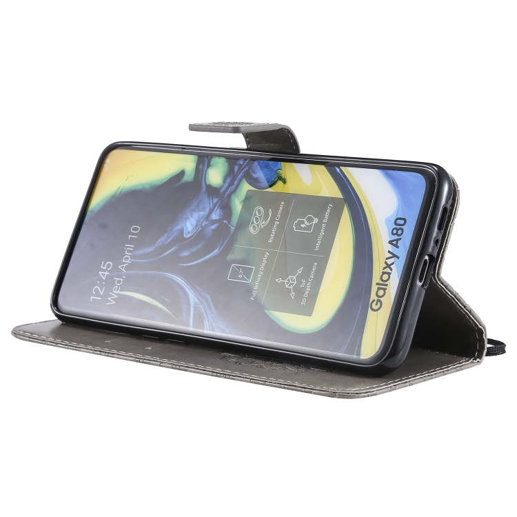 Funda Cuero Pu con Tapa Horizontal para Galaxy A80 con Soporte Ranuras Tarjetas Billetera y Cordón (Gris)
