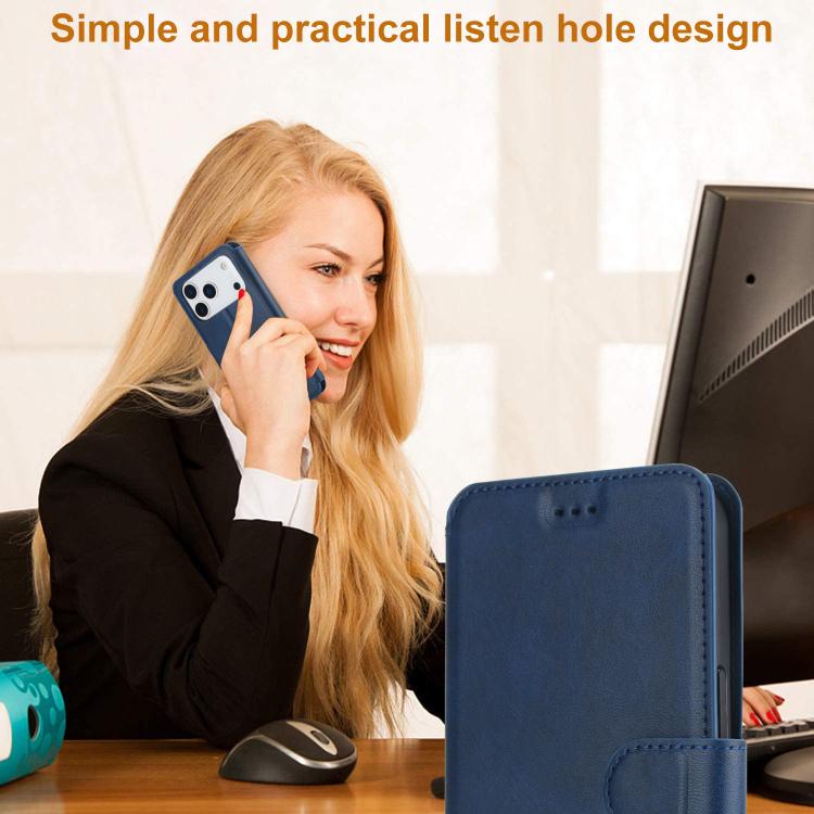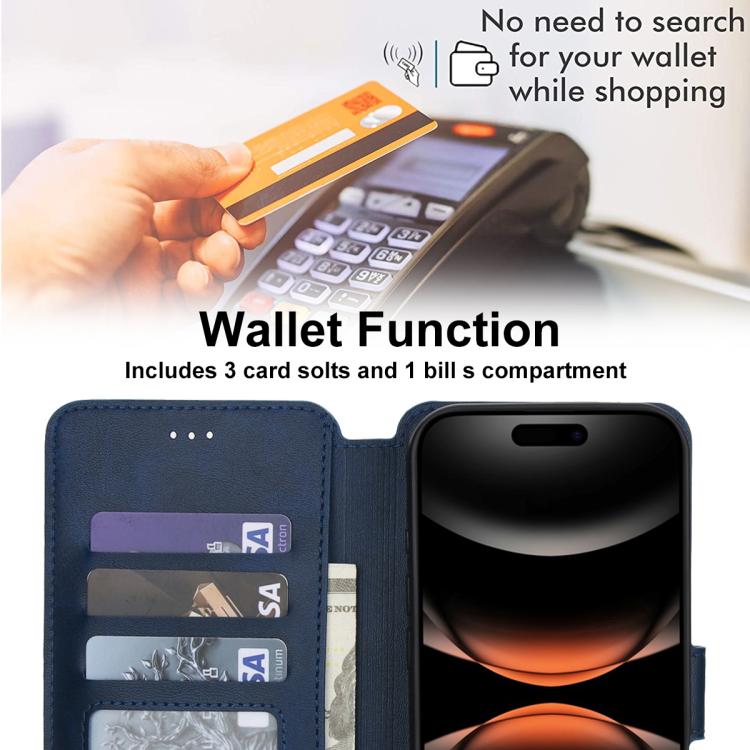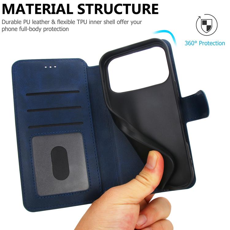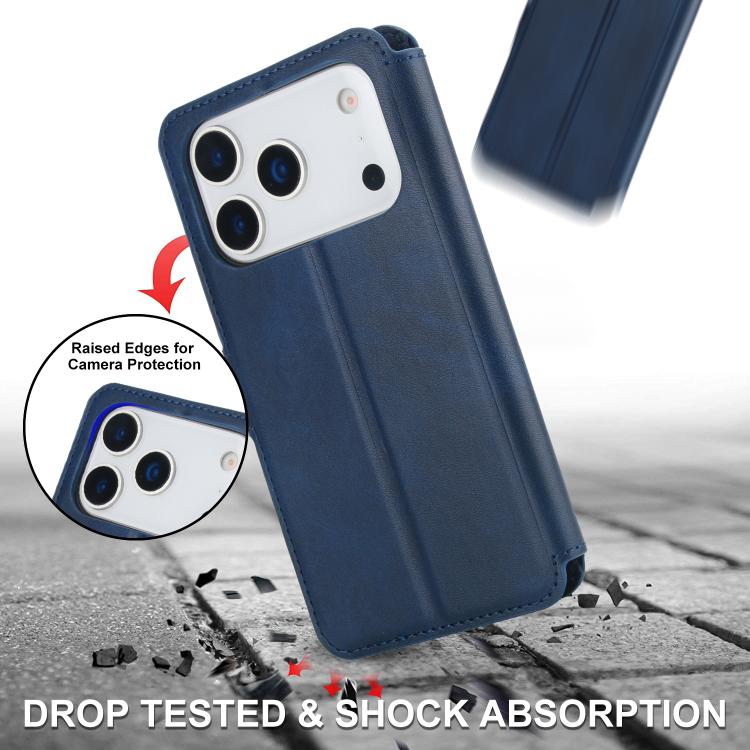 Funda de cuero PU + TPU a prueba de golpes para iPhone 17 Pro (azul)