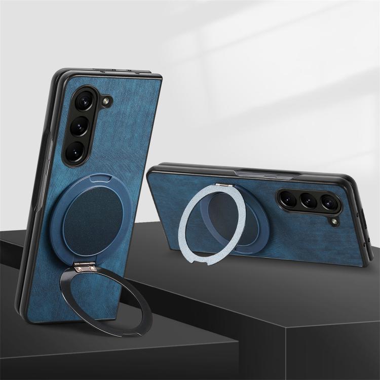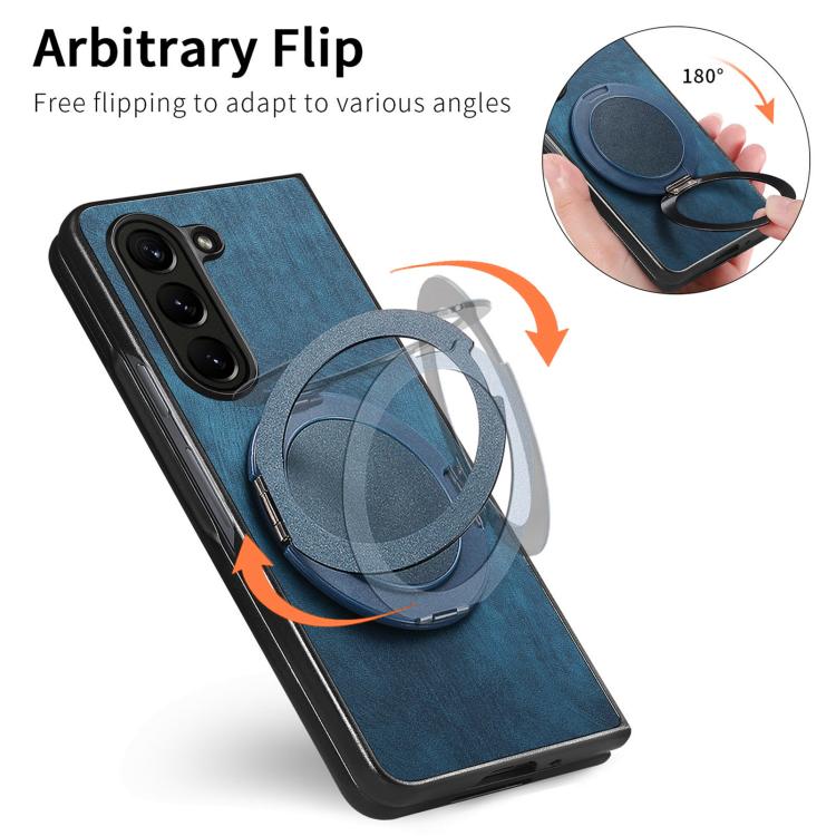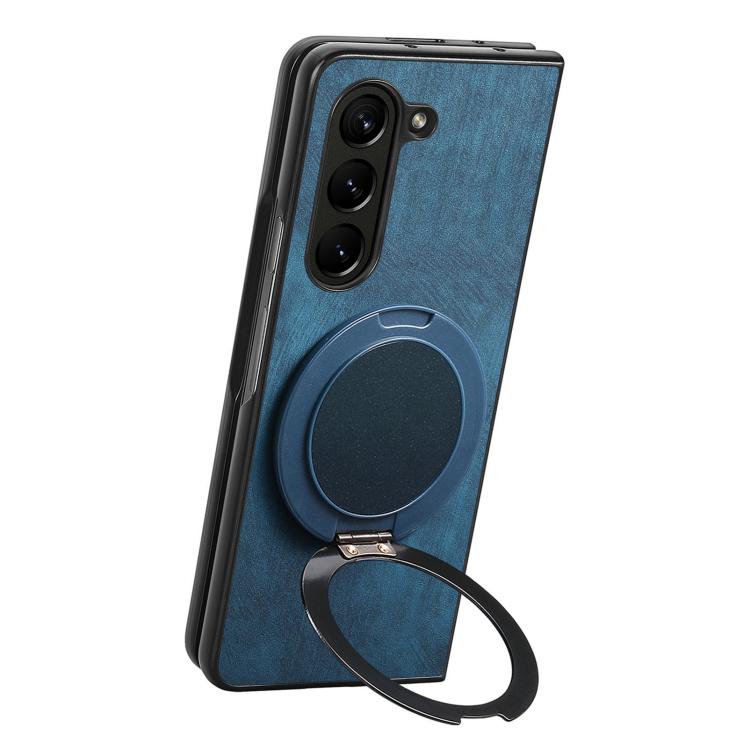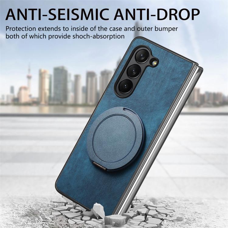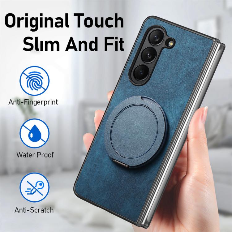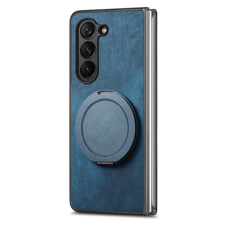 Funda de cuero retro con soporte giratorio redondo para Samsung Galaxy Z Fold6 (azul)