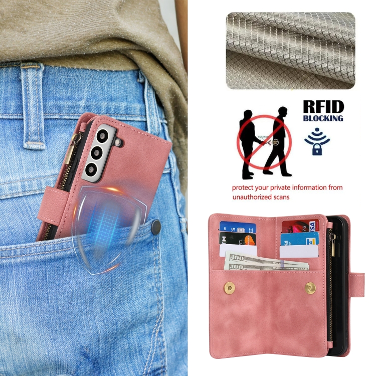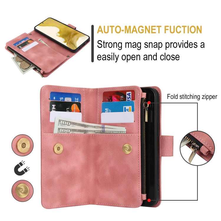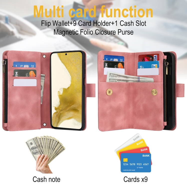 Funda Cuero Rfid con Cremallera Samsung Galaxy S22+ 5G Dream con 9 Tarjetas y Cordón (Oro Rosa)
