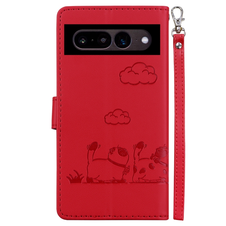 Funda de Cuero Rfid para Google Pixel 7 con Diseño de Gatos (Roja)