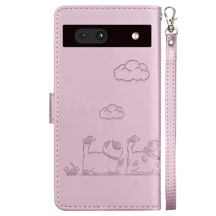 Funda de Cuero Rfid para Google Pixel 7A con Diseño de Gatos (Oro Rosa)