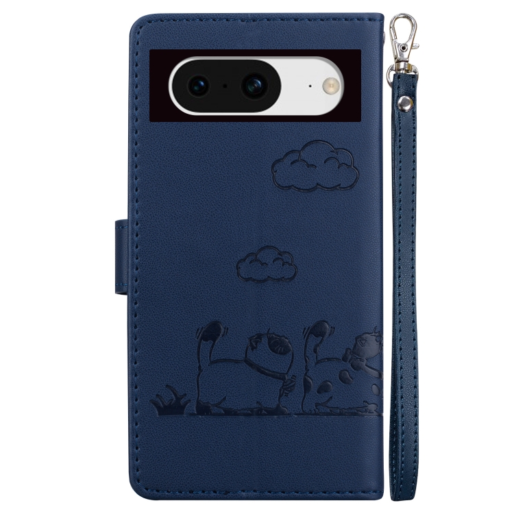 Funda de Cuero Rfid para Google Pixel 8 Pro con Diseño de Gatos (Azul)