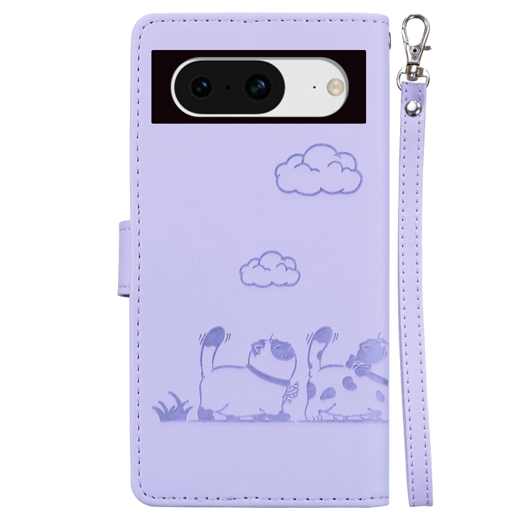 Funda de Cuero Rfid para Google Pixel 8 Pro con Diseño de Gatos (Morado)
