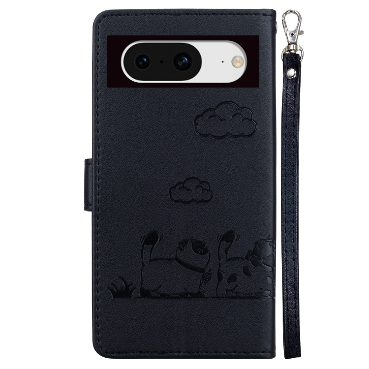 Funda de Cuero Rfid para Google Pixel 8 Pro con Diseño de Gatos (Negra)