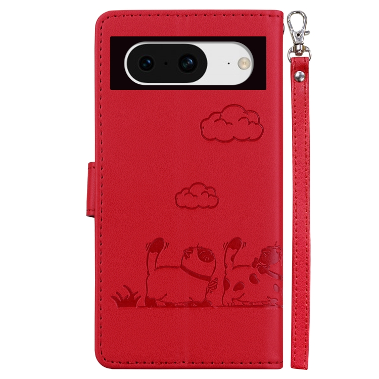 Funda de Cuero Rfid para Google Pixel 8 con Diseño de Gatos (Roja)