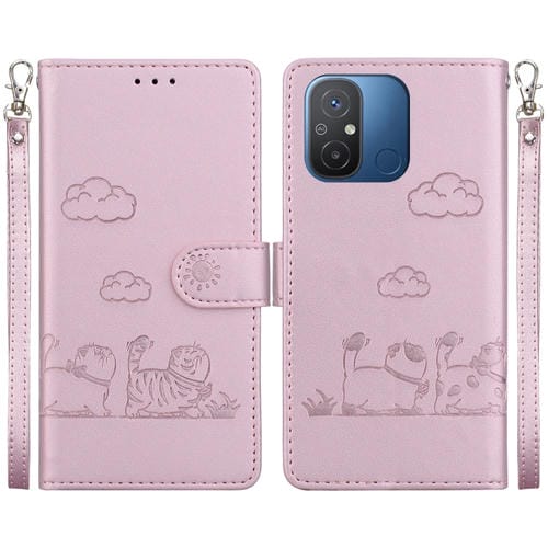 Funda de Cuero Rfid con Diseño de Gatos para Redmi 12C/11A (Oro Rosa)