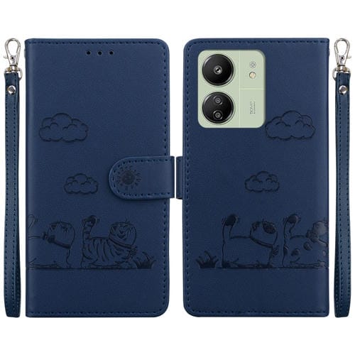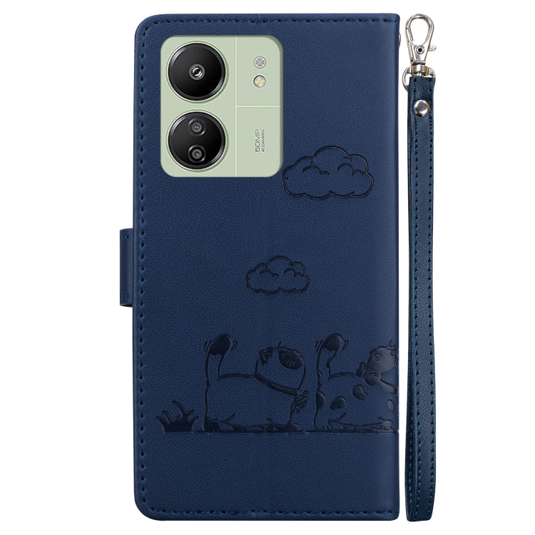 Funda de Cuero Rfid con Diseño de Gatos para Redmi 13C 4G/5G (Azul)
