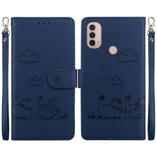 Funda de Cuero Rfid para Motorola Moto E40/E30/E20 con Diseño de Gatos (Azul)
