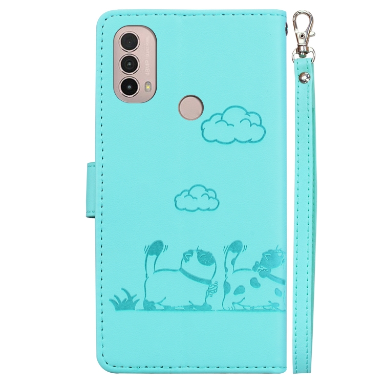 Funda de Cuero Rfid para Motorola Moto E40/E30/E20 con Diseño de Gatos (Verde)