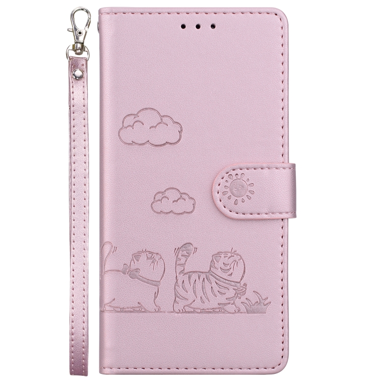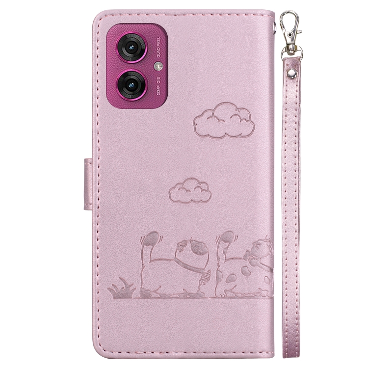 Funda de Cuero Rfid para Motorola Moto G55 con Diseño de Gatos (Oro Rosa)