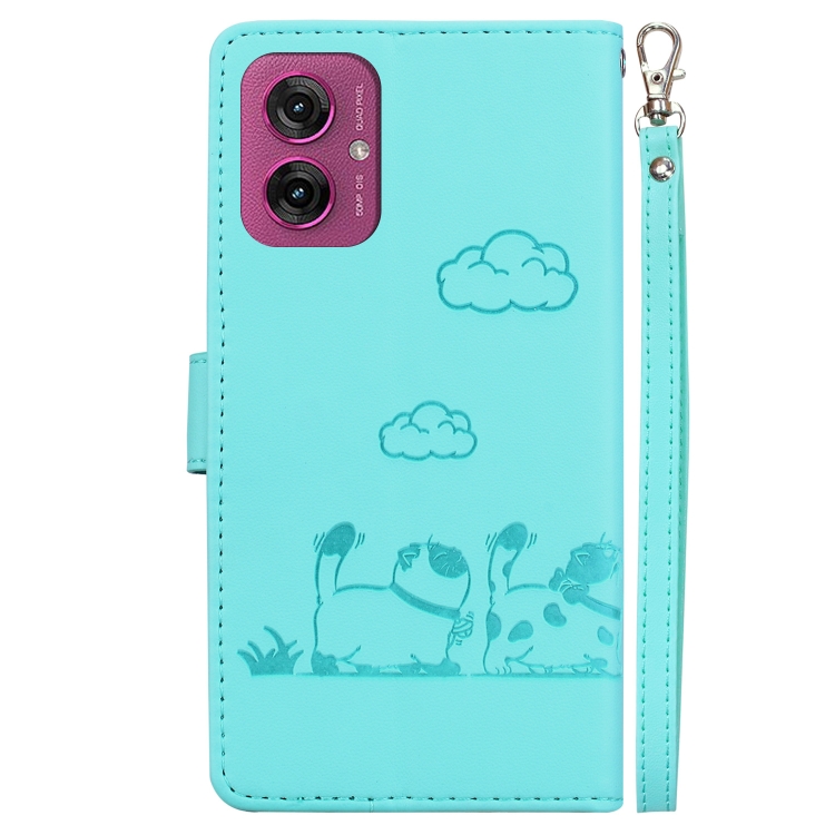 Funda de Cuero Rfid para Motorola Moto G55 con Diseño de Gatos (Verde)