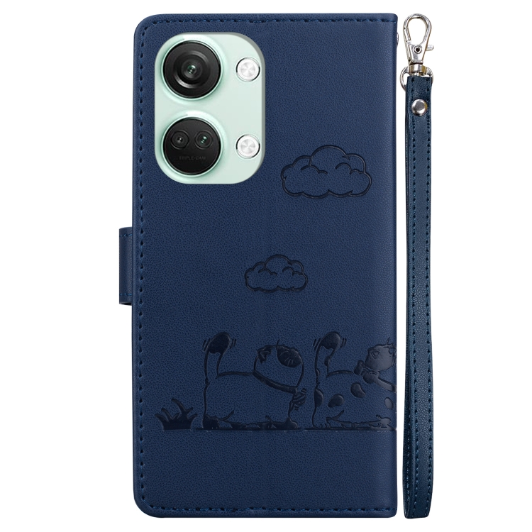 Funda de Cuero Rfid con Diseño de Gatos para OnePlus Nord 3 (Azul)