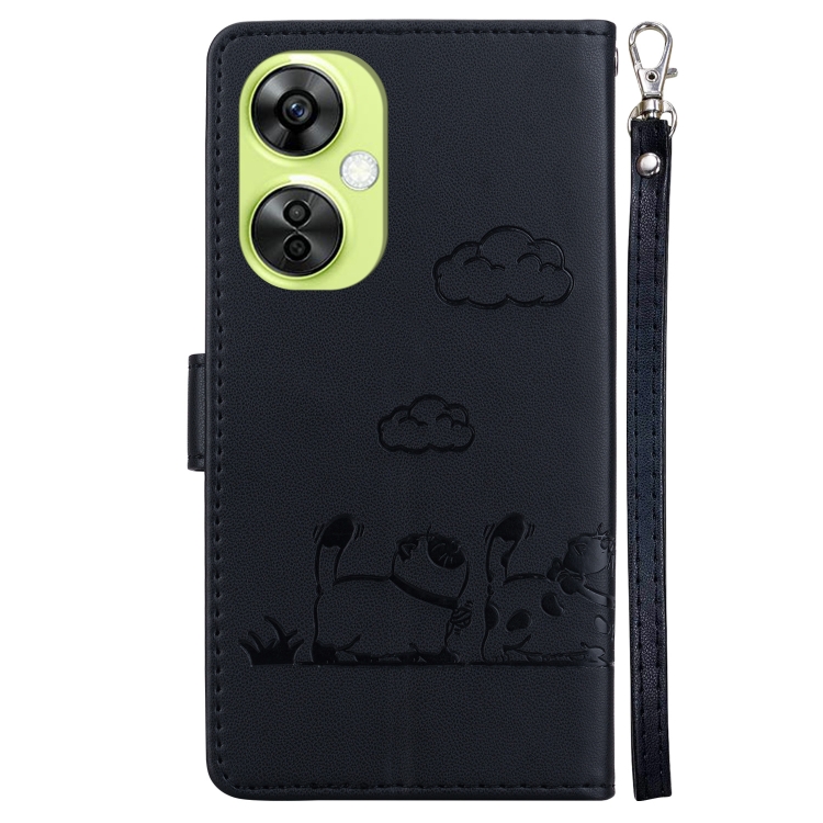 Funda de Cuero Rfid para OnePlus Nord Ce 3 Lite con Diseño de Gatos (Negra)
