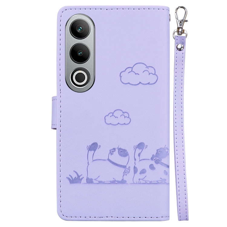 Funda de Cuero Rfid para OnePlus Nord Ce4 5G con Diseño de Gatos (Morado)