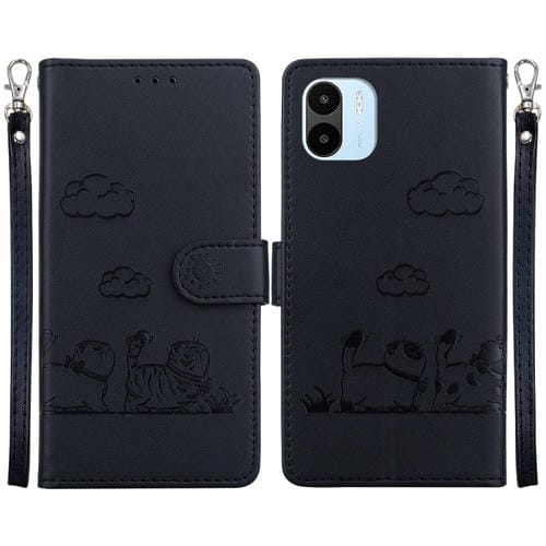 Funda de Cuero Rfid con Diseño de Gatos para Redmi A1/A2 (Negra)
