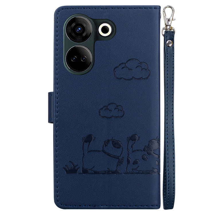 Funda de Cuero Rfid para Tecno Camon 20 Pro 4G y Camon 20 con Diseño de Gatos (Azul)