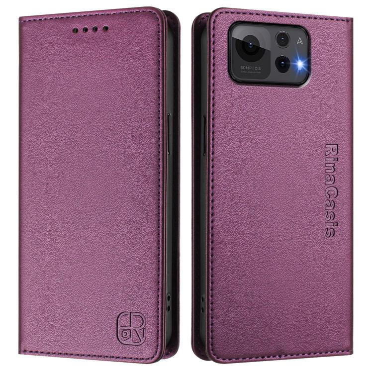 Funda de Cuero Rfid para Asus Zenfone 12 Ultra Rc01 con Doble Pliegue y Succión Magnética (Violeta)