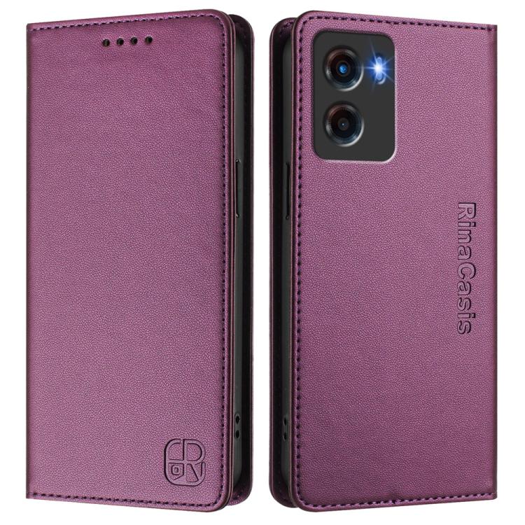 Funda de Cuero Rfid con Doble Pliegue y Succión Magnética para Motorola Moto G05 Rc01 (Violeta)