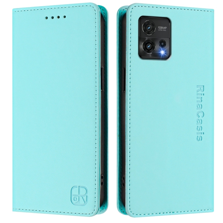 Funda de Cuero Rfid para Motorola Moto G72 Rc01 con Doble Pliegue y Succión Magnética (Verde Menta)