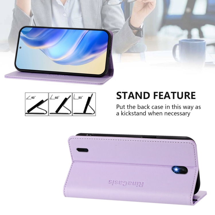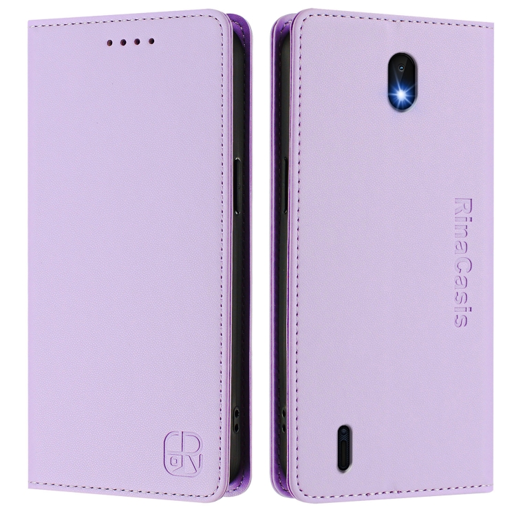Funda de Cuero Rfid con Doble Pliegue y Succión Magnética para Nokia C01 Plus / C1 2Nd Edition Rc01 (Morado Claro)