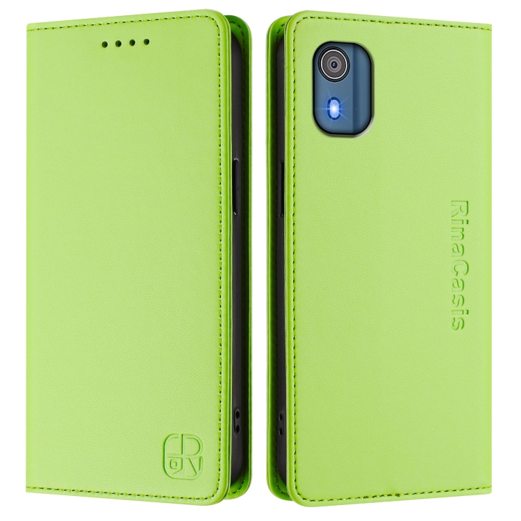 Funda de Cuero Rfid para Nokia C02 Rc01 con Doble Pliegue y Succión Magnética (Verde)