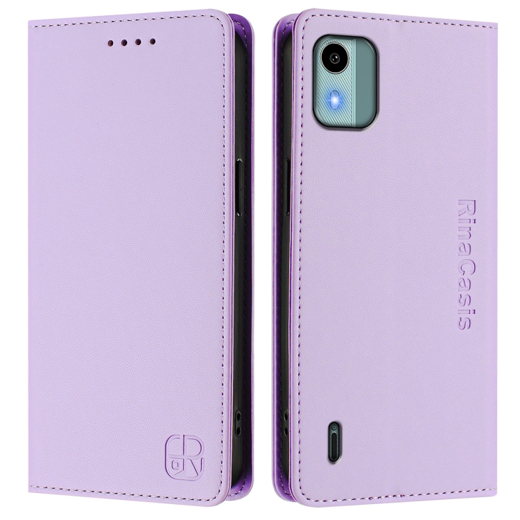 Funda de Cuero Rfid con Doble Pliegue y Succión Magnética para Nokia C12 Rc01 (Morado Claro)