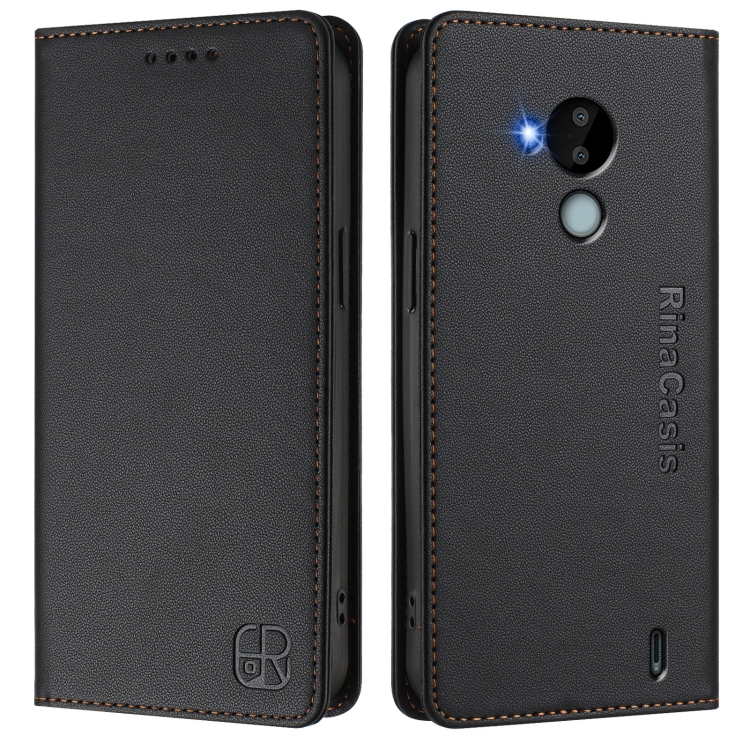 Funda de Cuero Rfid para Nokia C30 Rc01 con Doble Pliegue y Succión Magnética (Negra)