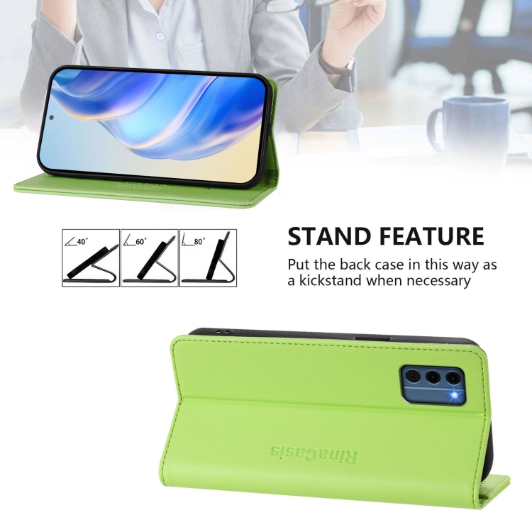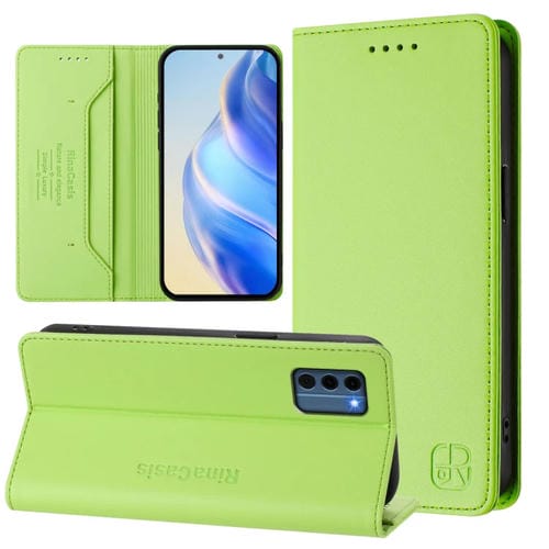 Funda de Cuero Rfid para Nokia C300 Rc01 con Doble Pliegue y Succión Magnética (Verde Hierba)