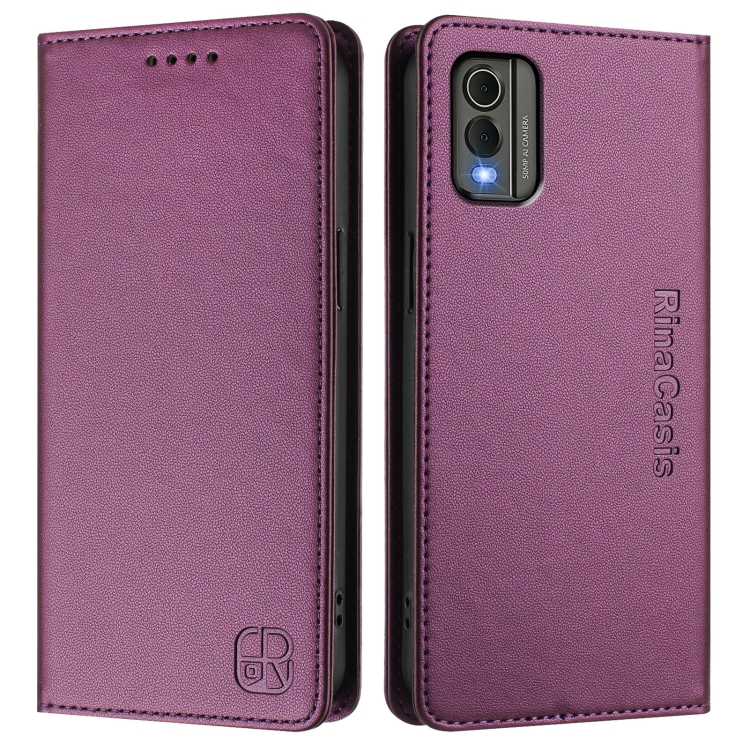 Funda de Cuero Rfid con Doble Pliegue y Succión Magnética para Nokia C32 Rc01 (Violeta)