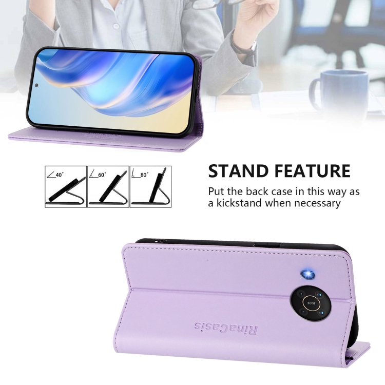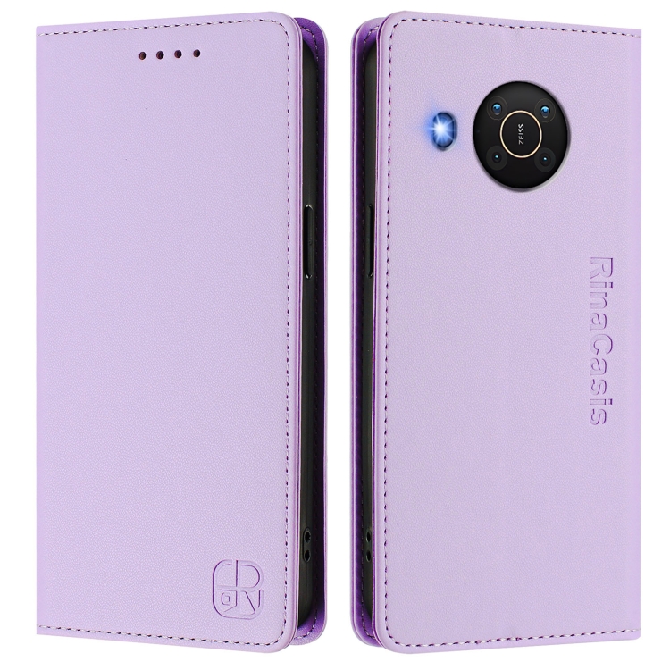 Funda de Cuero Rfid con Doble Pliegue y Succión Magnética para Nokia X20/X10 Rc01 (Morado Claro)