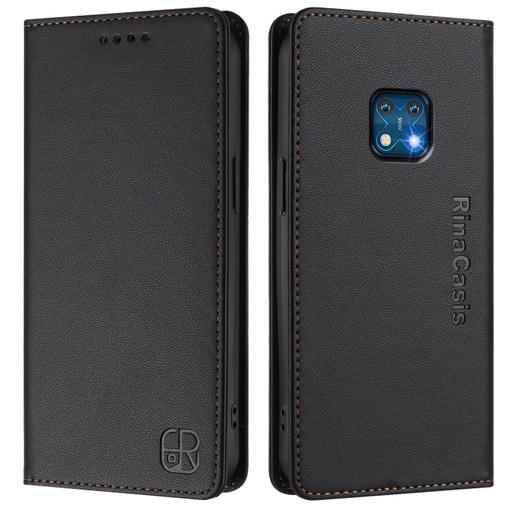Funda de Cuero Rfid con Doble Pliegue y Succión Magnética para Nokia Xr20 Rc01 (Negra)