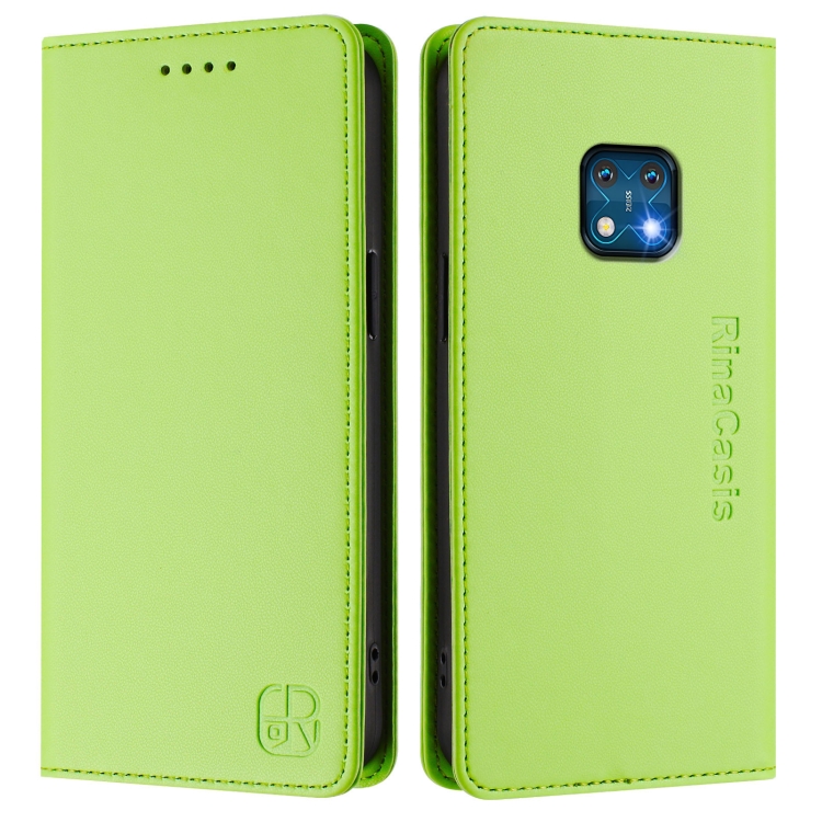 Funda de Cuero Rfid para Nokia Xr20 Rc01 con Doble Pliegue y Succión Magnética (Verde Hierba)