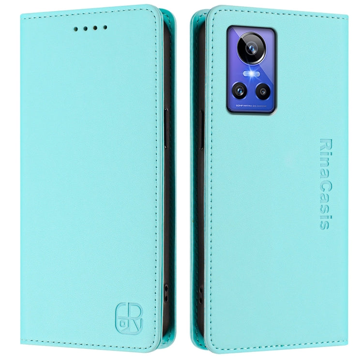 Funda de Cuero Rfid con Doble Pliegue y Succión Magnética para Realme Gt Neo 3 Rc01 (Verde Menta)