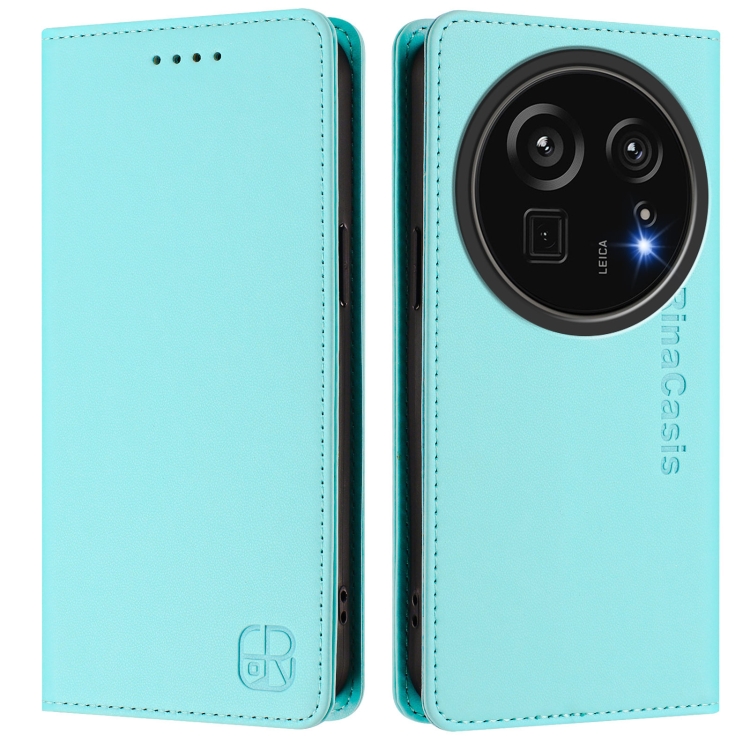 Funda de Cuero con Doble Pliegue y Succión Magnética RFID para Sharp Aquos R9 Pro Sh-54E Rc01 (Verde Menta)