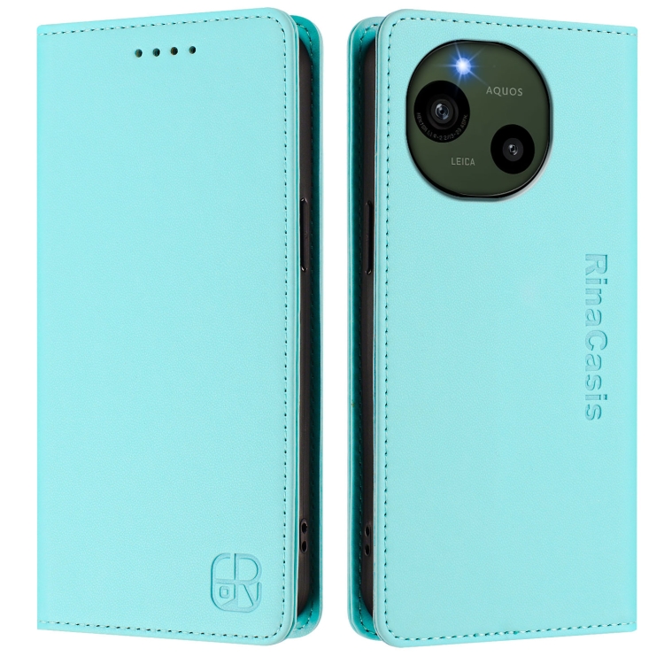 Funda de Cuero con Doble Pliegue y Succión Magnética Rfid para Sharp Aquos R9 Sh-51E Rc01 (Verde Menta)