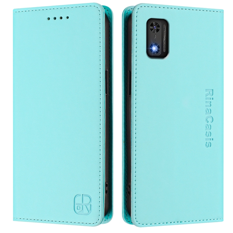 Funda de Cuero Rfid para Tecno Pop 6C y Itel A18 Rc01 con Doble Pliegue y Succión Magnética (Verde Menta)