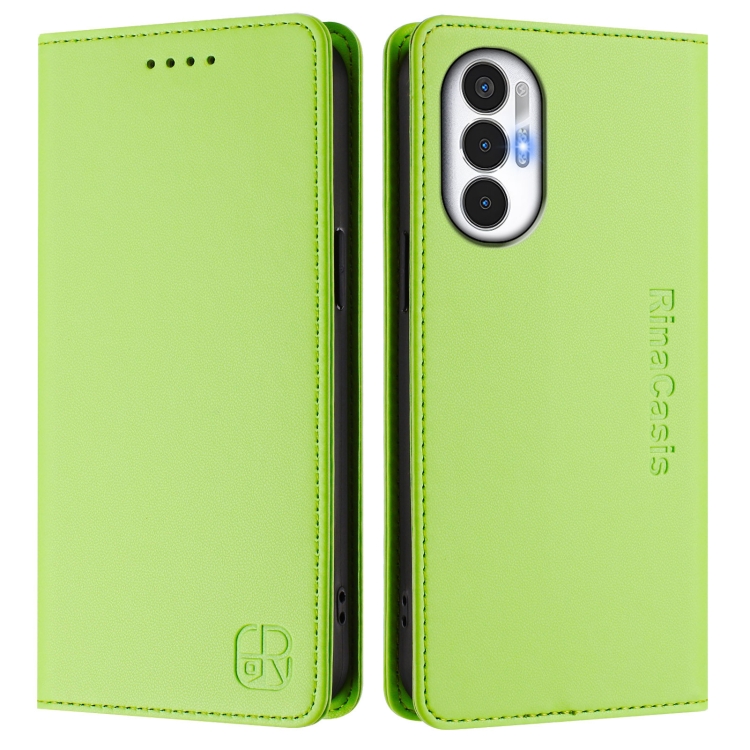 Funda de Cuero Rfid para Tecno Pova 3 Rc01 con Doble Pliegue y Succión Magnética (Verde Hierba)