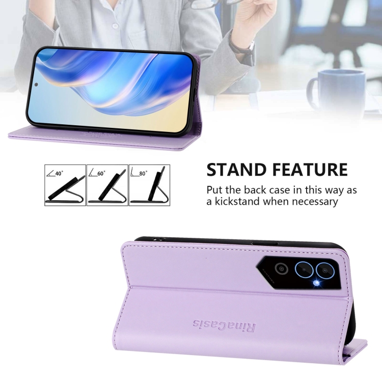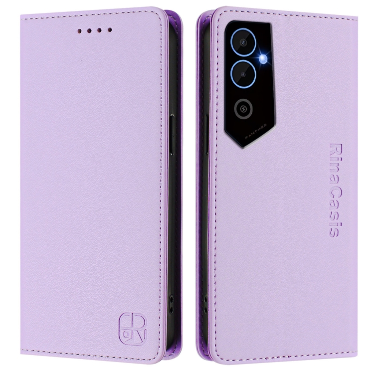 Funda de Cuero Rfid para Tecno Pova Neo 2 Rc01 con Doble Pliegue y Succión Magnética (Morado Claro)