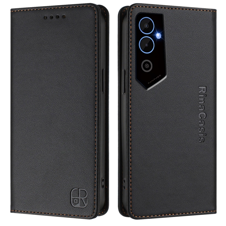 Funda de Cuero Rfid para Tecno Pova Neo 2 Rc01 con Doble Pliegue y Succión Magnética (Negra)