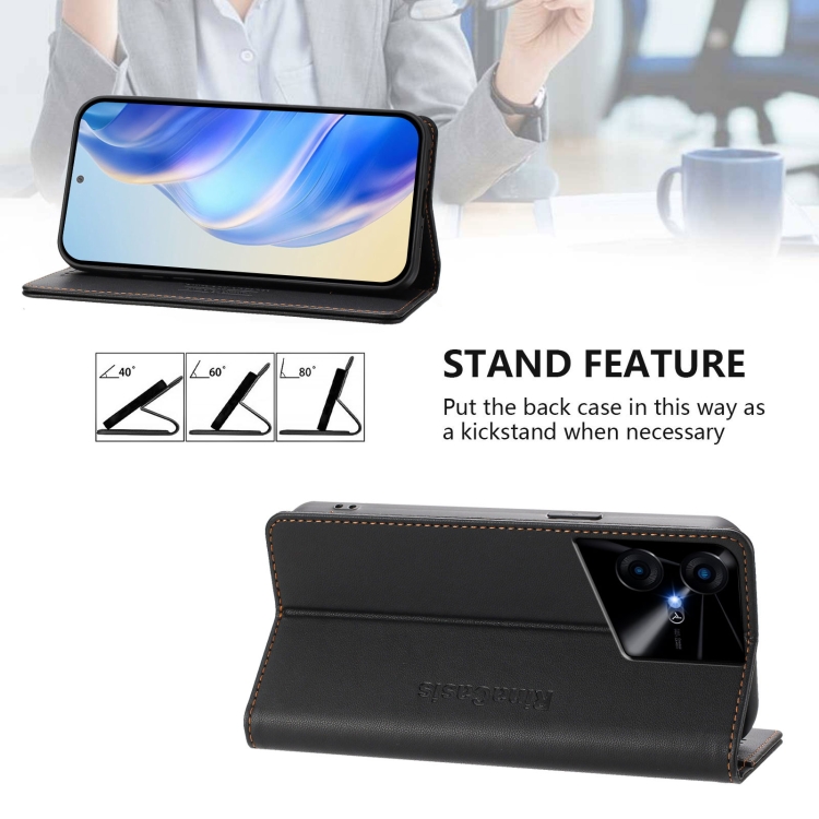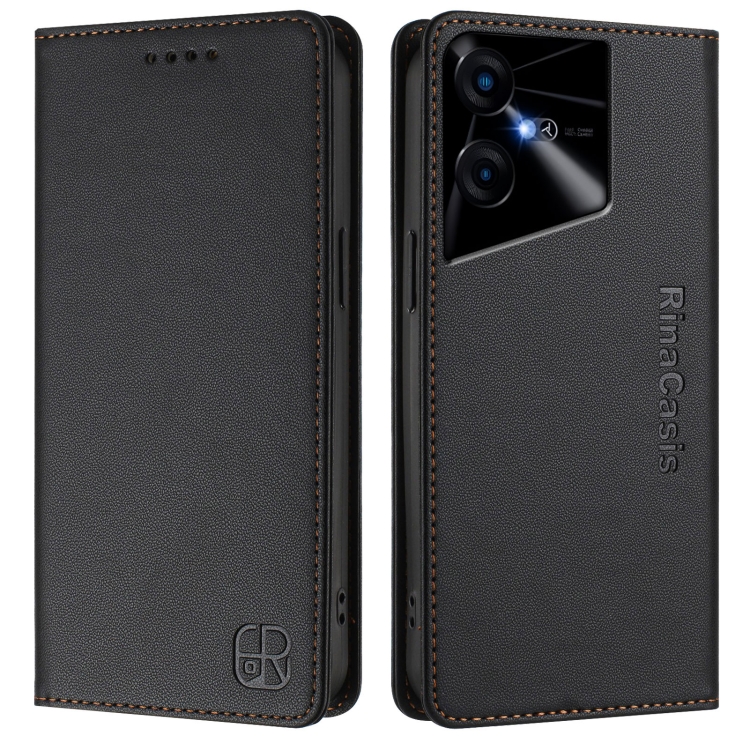 Funda de Cuero Rfid para Tecno Pova Neo 3 Rc01 con Doble Pliegue y Succión Magnética (Negra)