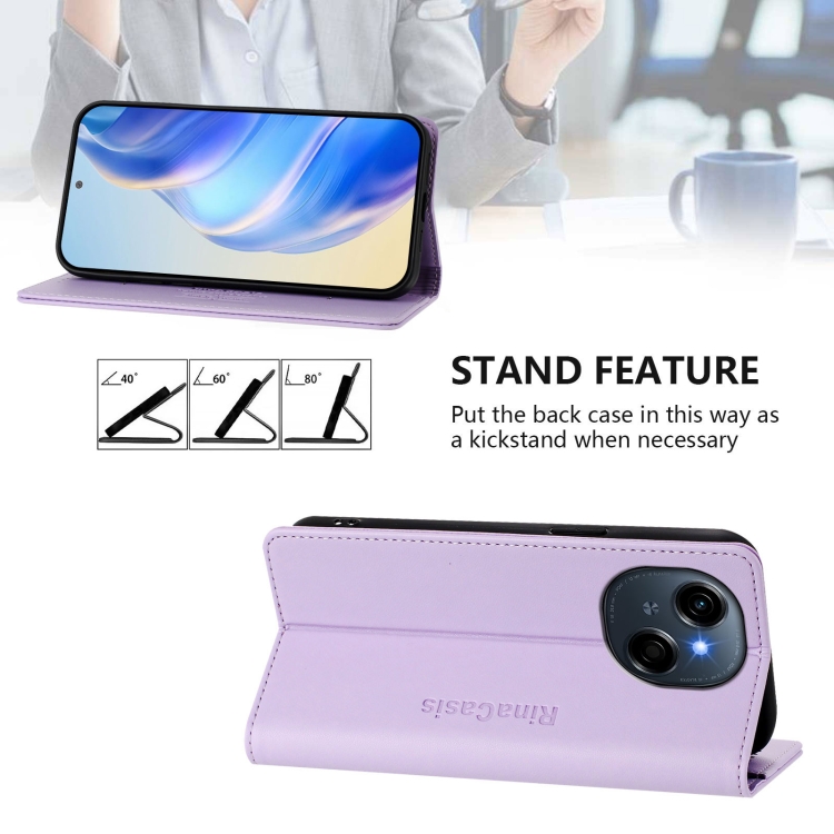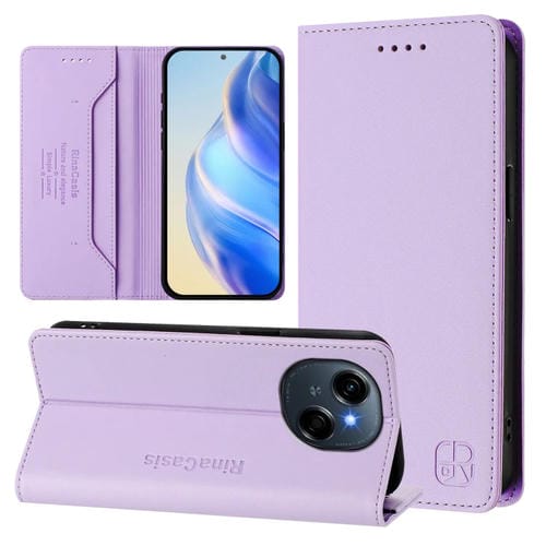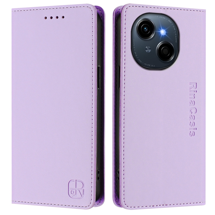 Funda de Cuero Rfid para Tecno Spark Go 1 / 2025 / Pop 9 Rc01 con Doble Pliegue y Succión Magnética (Morado Claro)