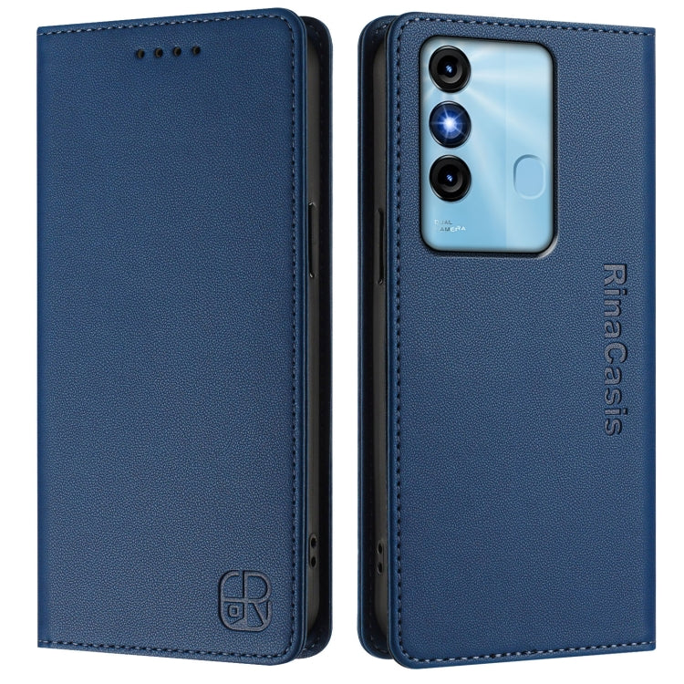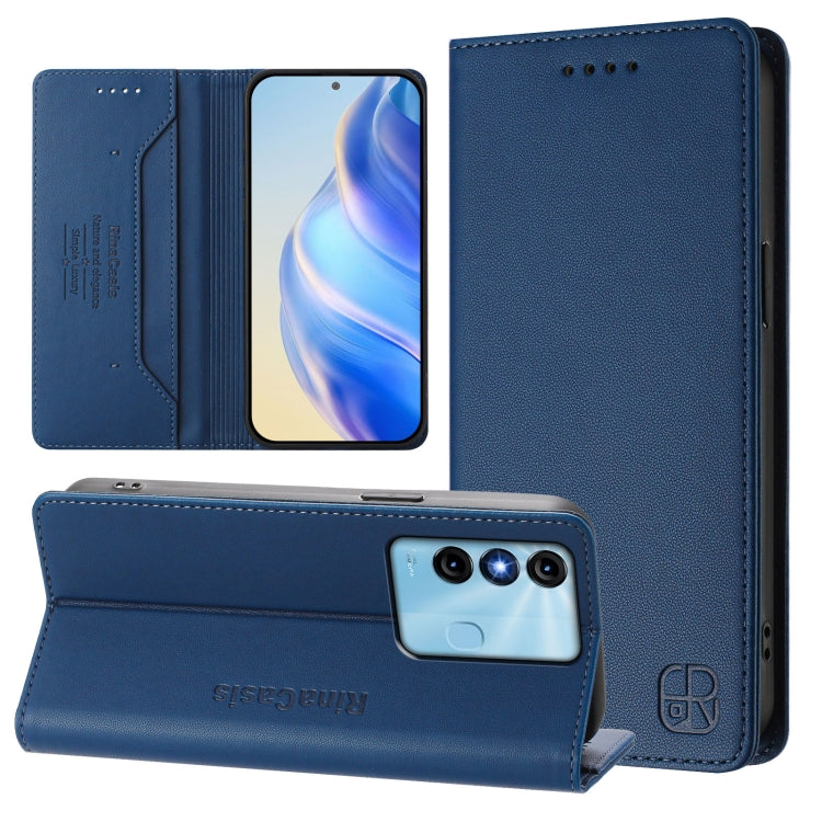 Funda de Cuero Rfid para Teléfono Itel P38/S17/Vision 3 Rc01 con Doble Pliegue y Succión Magnética (Azul Oscuro)